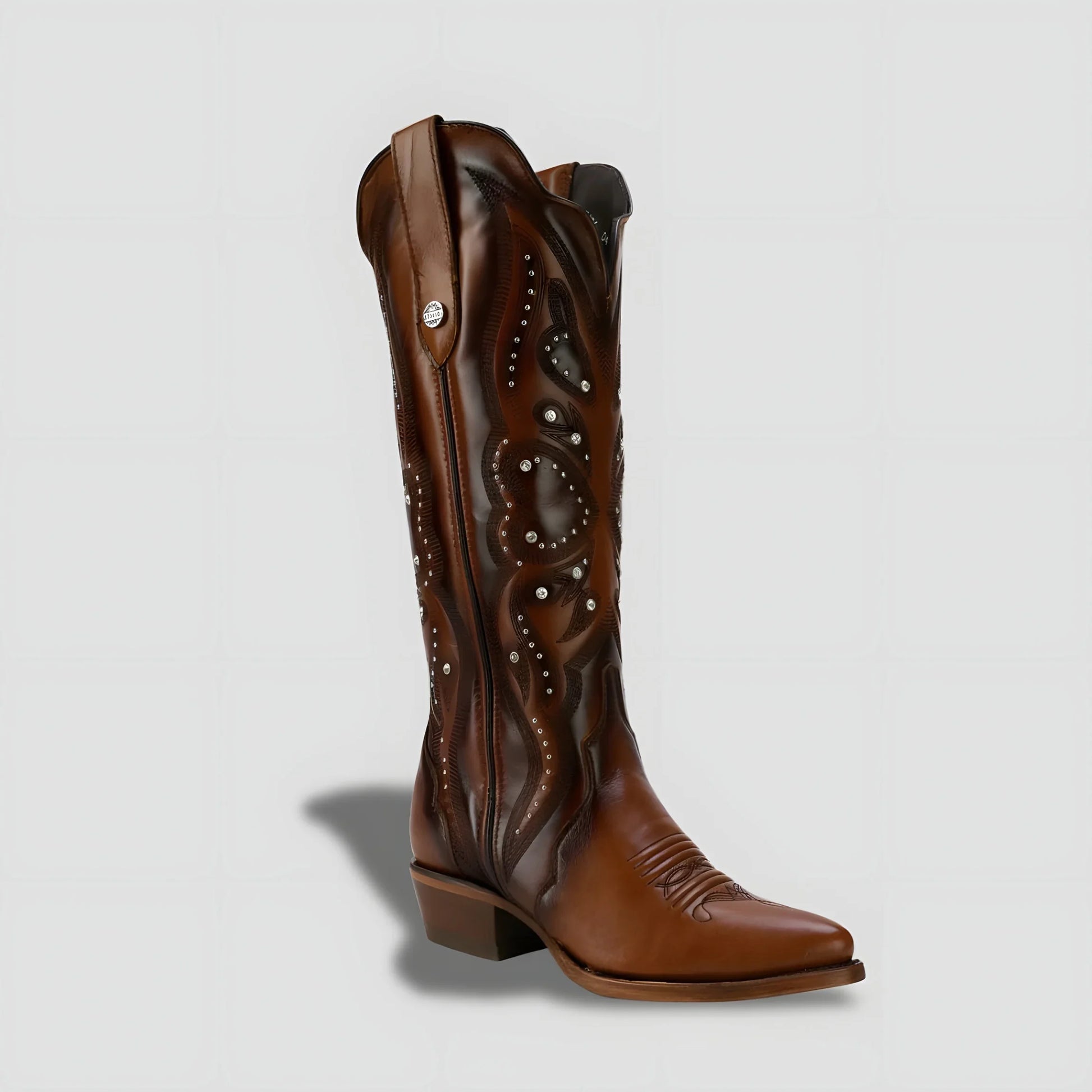 Goat Leather Boots with Fine Embroidery, Rhinestones, and 4.5cm Heel - Handcrafted Luxury
