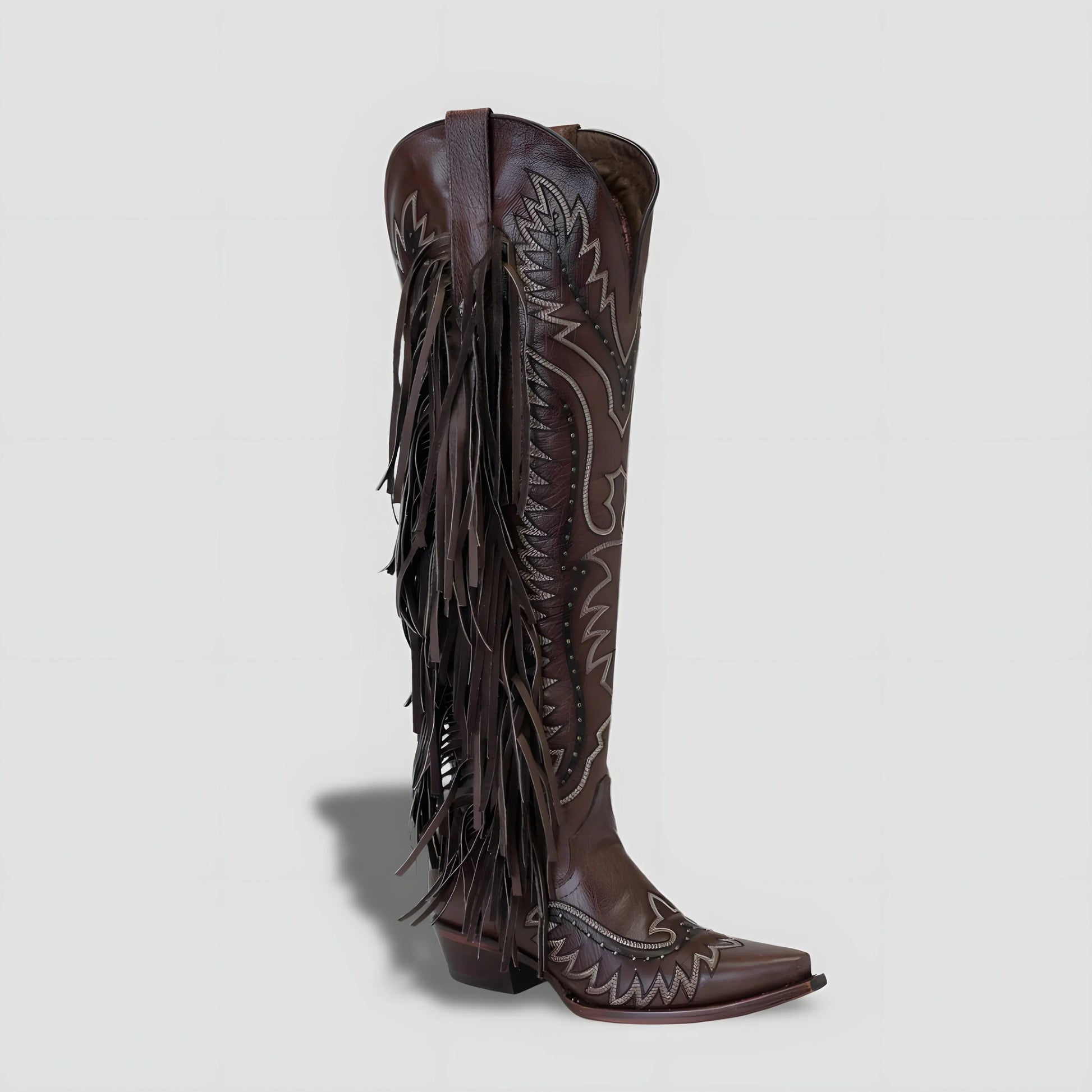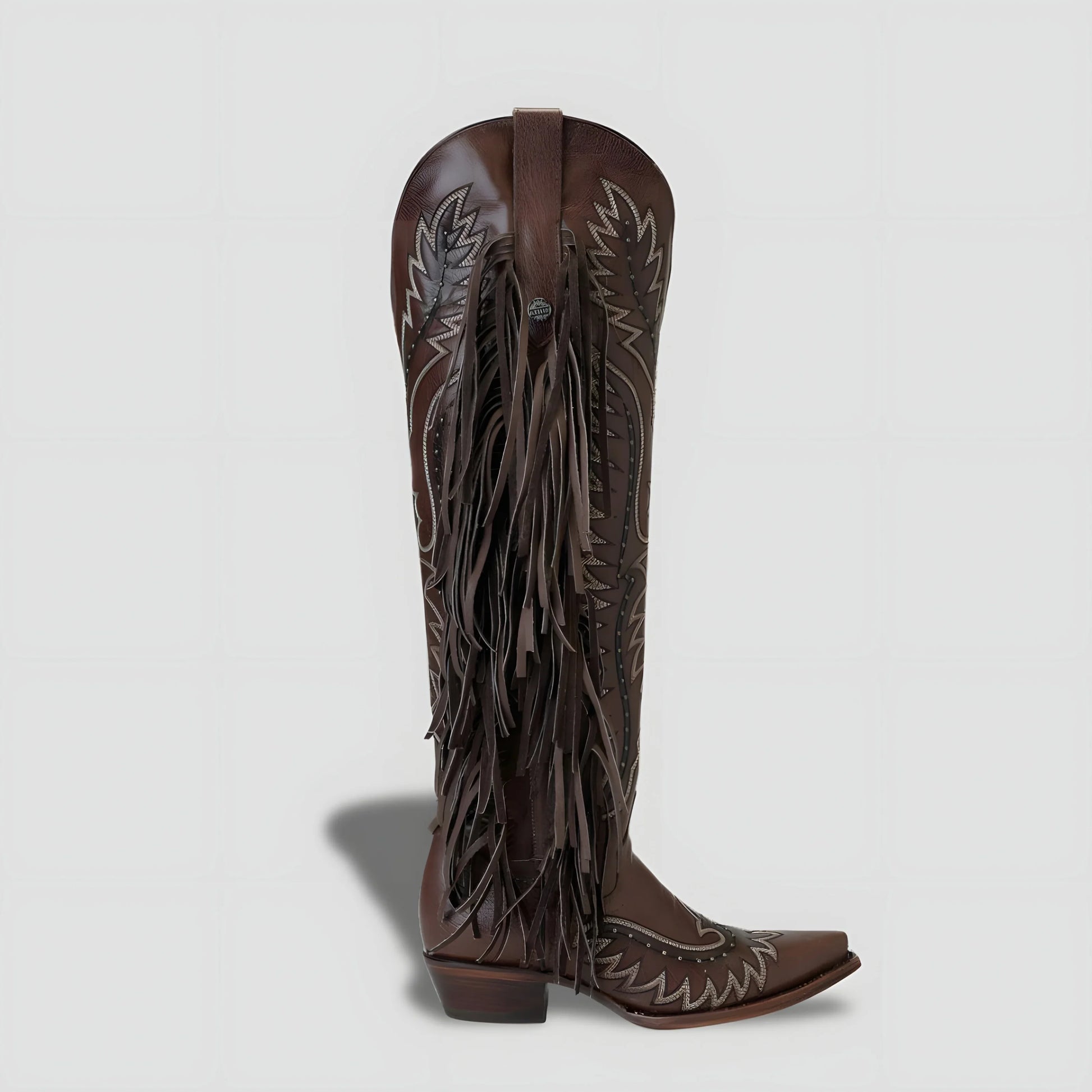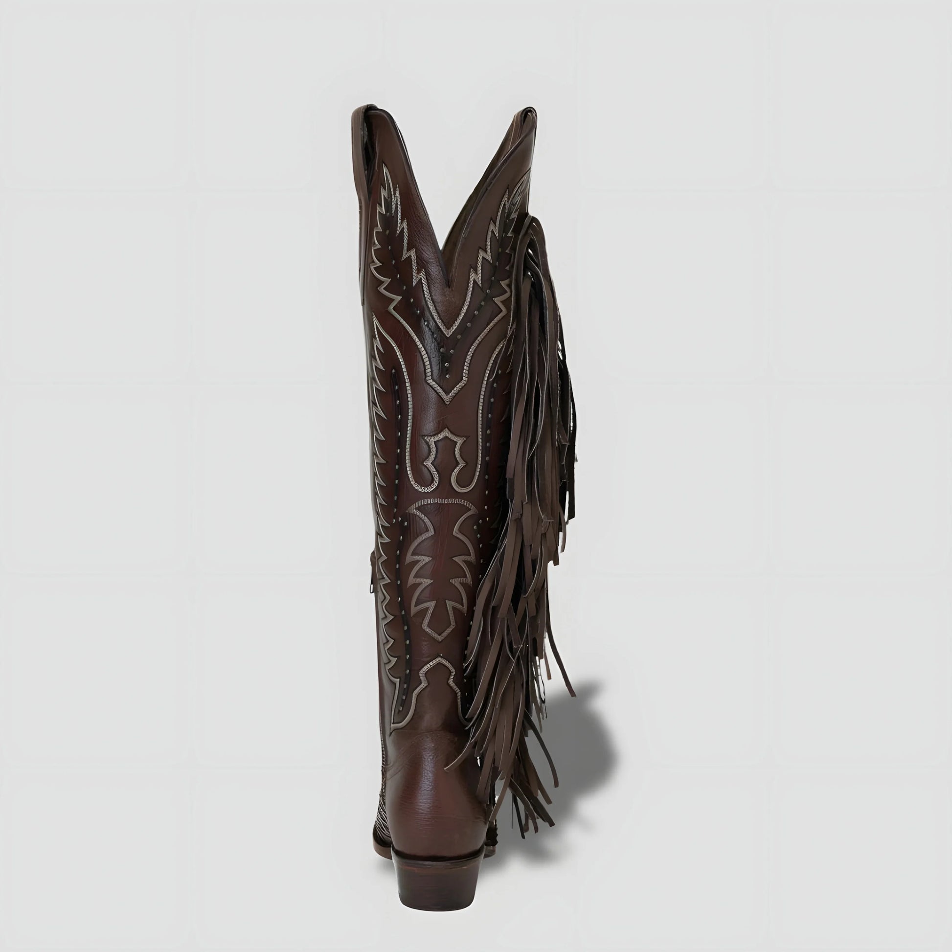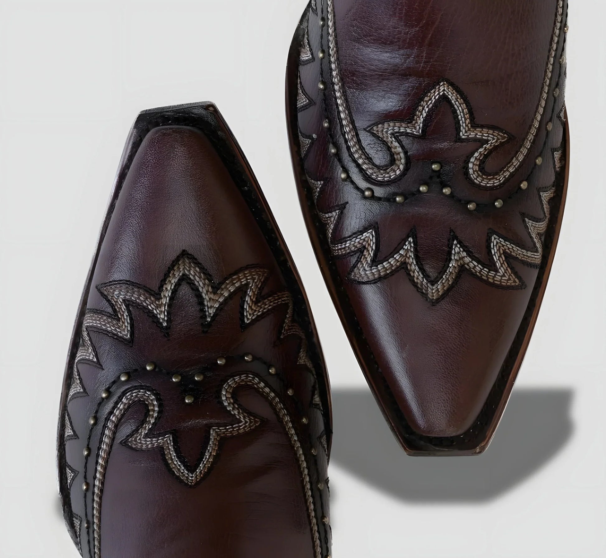 The decorative barbs on the sides add dynamism and a unique character to the design. This traditional cowboy boot detail adds movement and personality, creating a distinctive and authentic style.