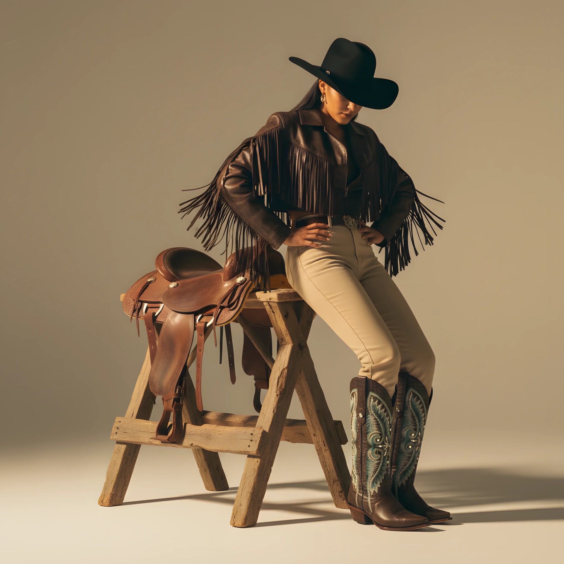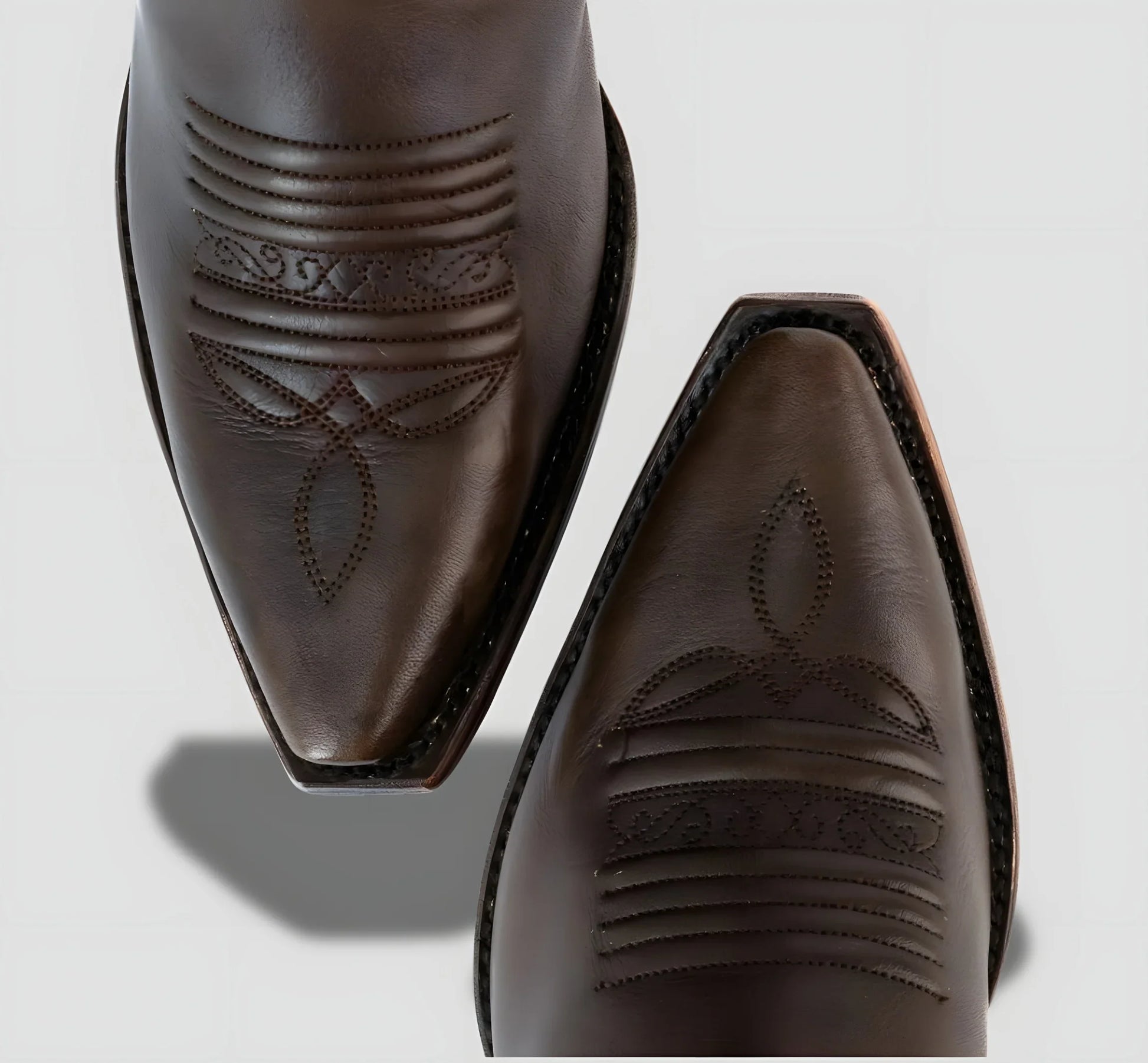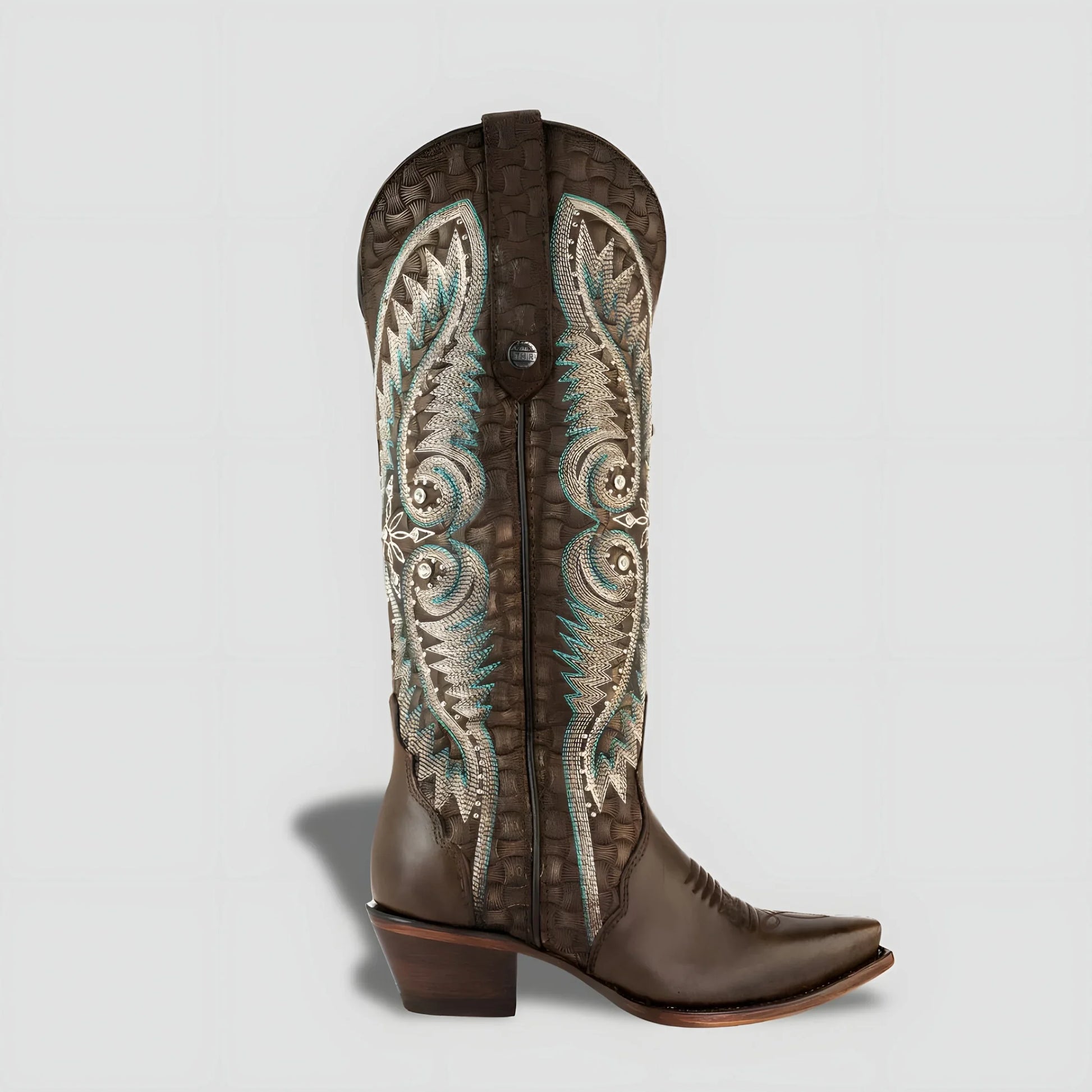 Crafted from 100% genuine cowhide, this boot is enhanced with authentic embossing that adds texture and distinction. The handcrafted embroidery, combined with rhinestones and studs, adds a sophisticated and exclusive touch.