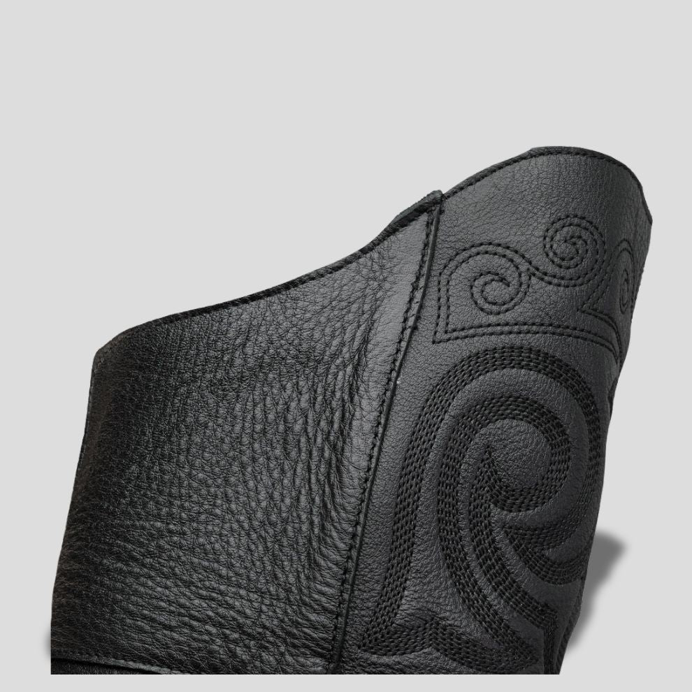 Evita mojar la bota o exponerla a la luz directa por periodos prolongados, ya que esto puede modificar el tono natural de la piel. No la acerques a objetos filosos ni frotes con fuerza las aplicaciones de láser o bordado. Asimismo, no la expongas a solventes ni productos químicos agresivos. Para su mantenimiento, límpiala con un paño ligeramente húmedo con agua limpia para retirar el polvo, déjala secar a temperatura ambiente y finalmente frótala con una esponja lustradora de piel para devolverle su brillo natural.